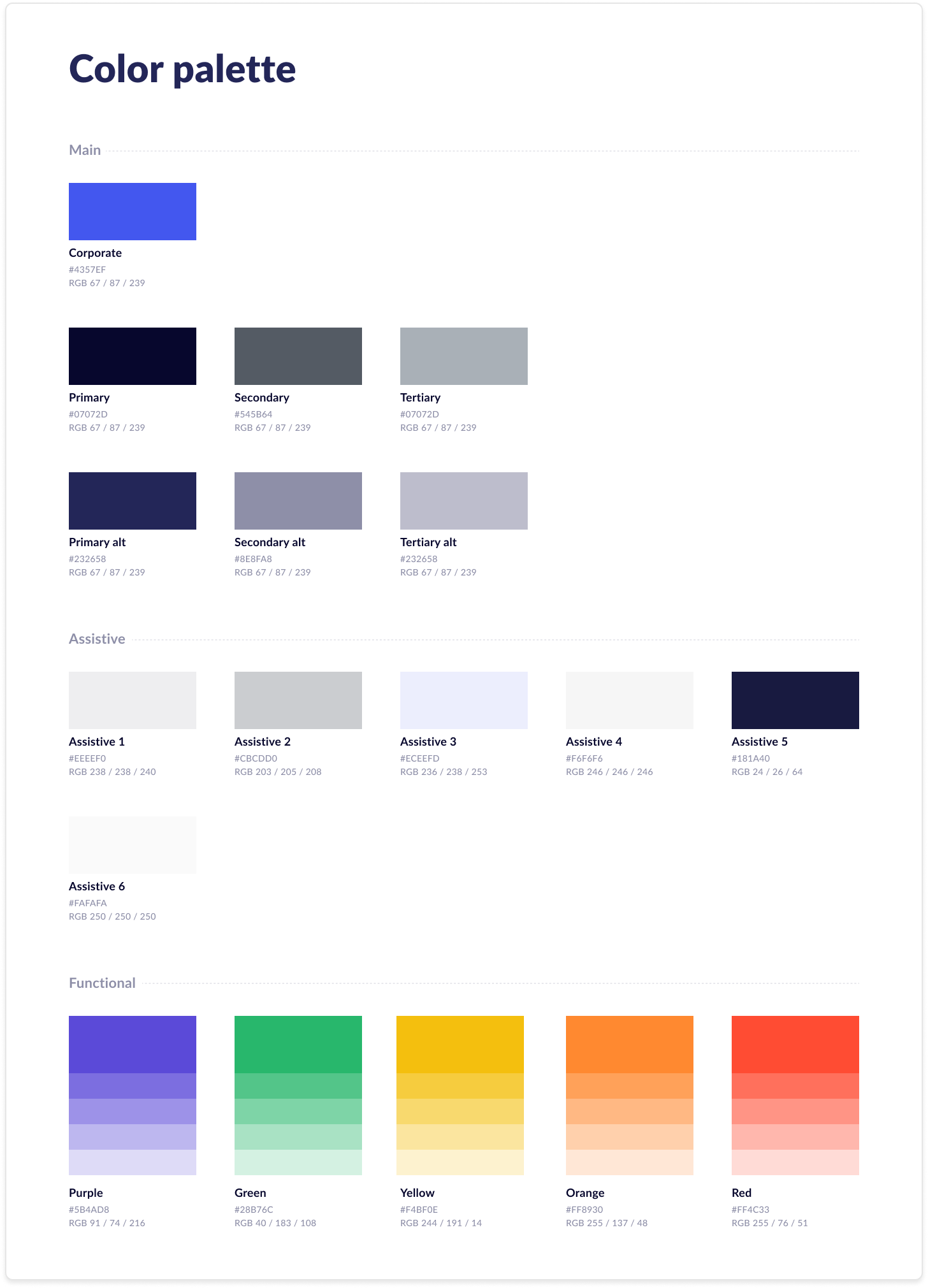 + Layout: Color palette, typography, icons, grid system, spacing, theme...