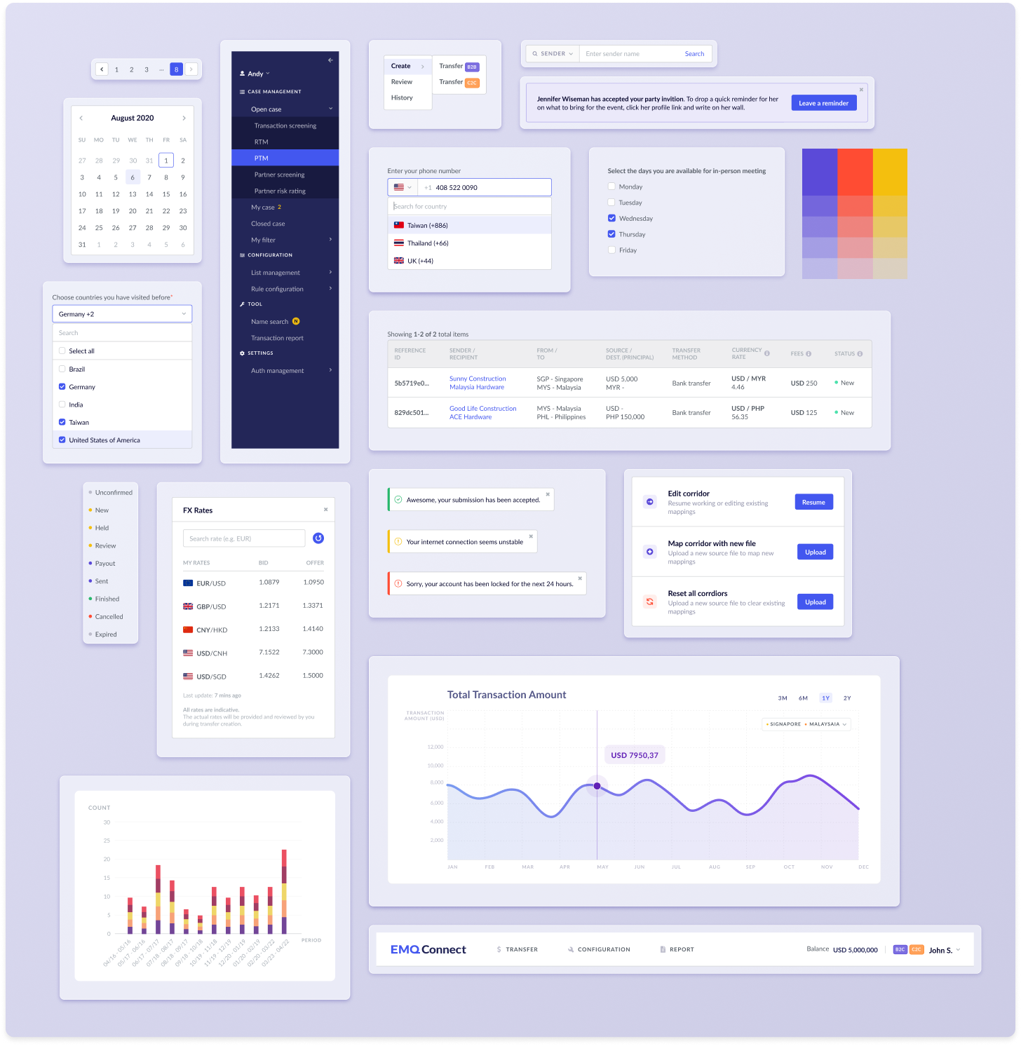 As the business of EMQ begins to scale, I was brought on board to lead UX/UI for a new anti-money laundering product. This presents the perfect opportunity to push for a formal design system that not only benefits the existing Core Admin tool but also future EMQ products. I am eager to create a design system that establishes a single source of truth for aesthetics and interaction patterns, which the company lacks. Having a design system enables EMQ to achieve product consistency and save resources for both the engineering and design teams.